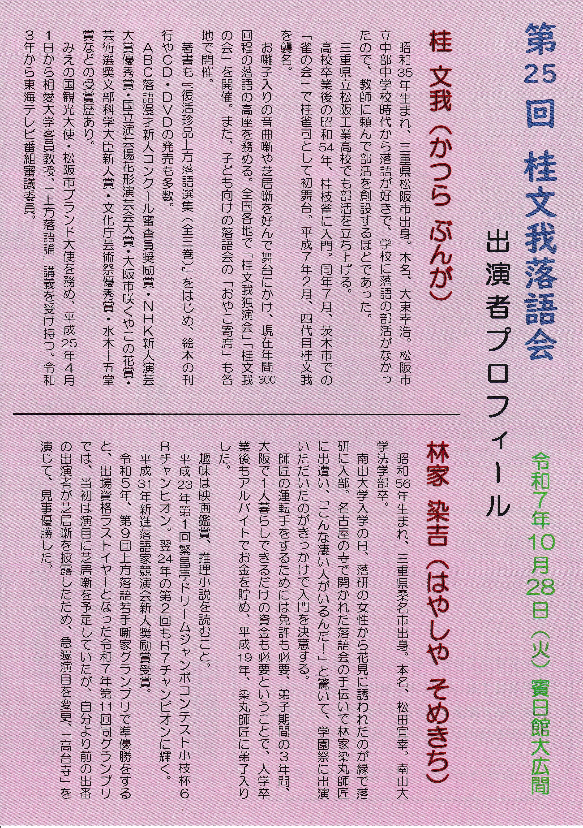 <第25回桂文我落語会>