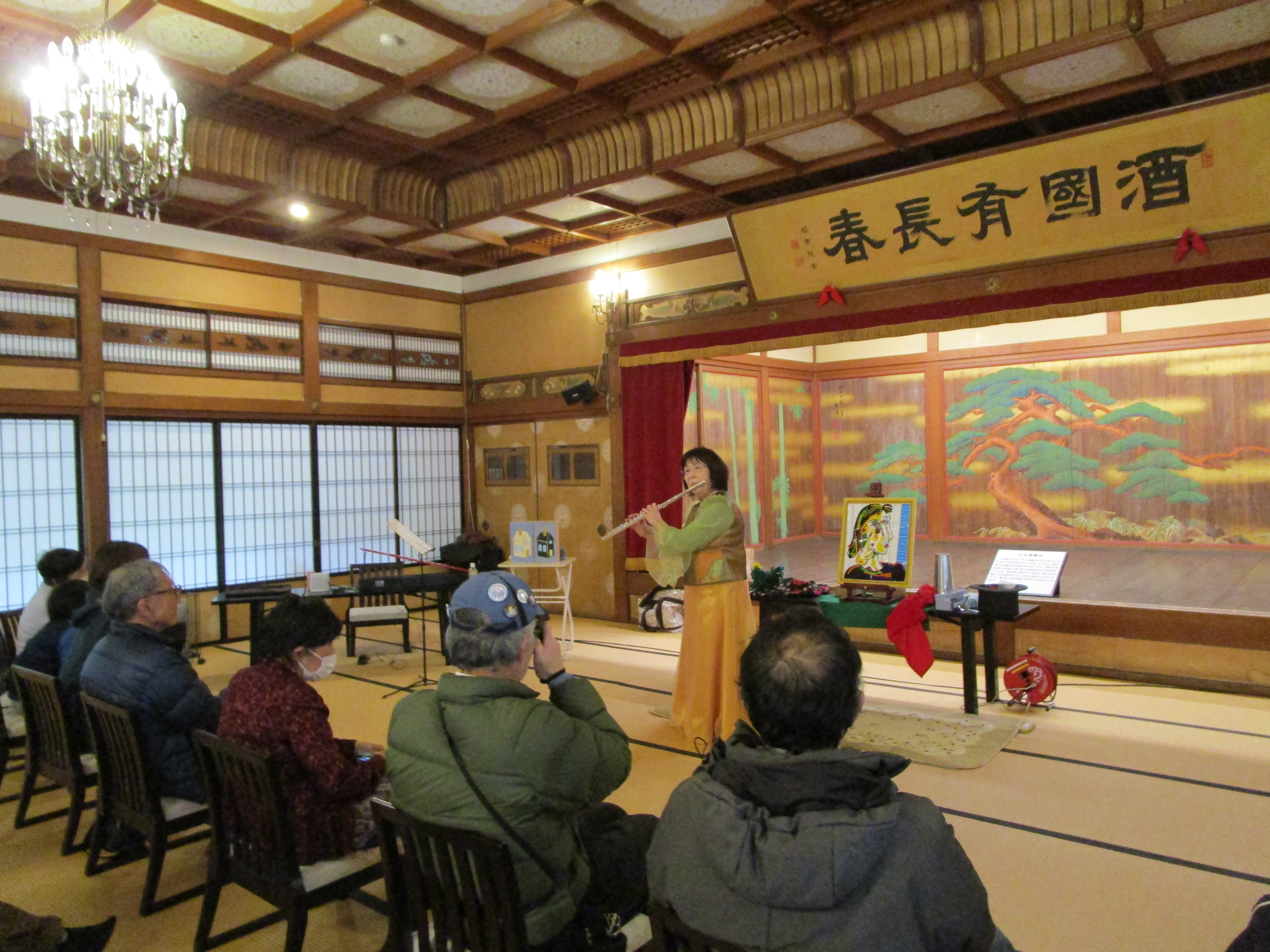 津市在住の塾講師、小保方よしのさんのフルート演奏(時には歌や紙芝居も)を